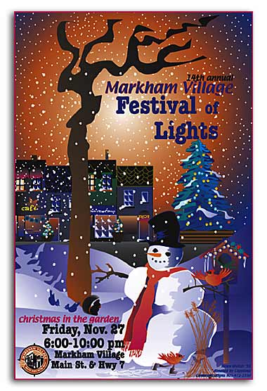 Markham Village Festival of Lights 1998One of an ongoing series of posters developed to promote our local village winter festival. Back to Posters. Back to the Portfolio.