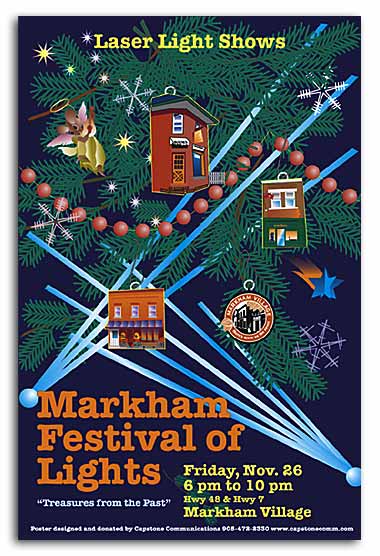Markham Village Festival of Lights 1999One of an ongoing series of posters developed to promote our local village winter festival. Back to Posters. Back to the Portfolio.