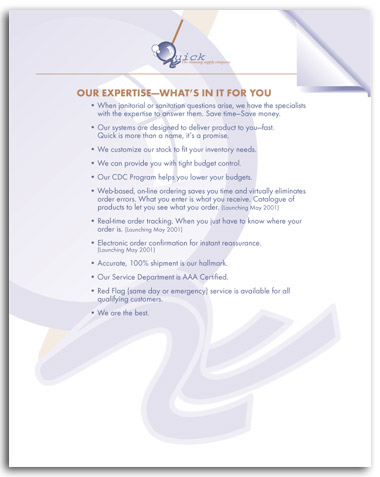 Quick: fact sheetsA series of fact sheets that goes to every new prospect. All part of Quick's new marketing program. Back to Other. Back to the Portfolio.